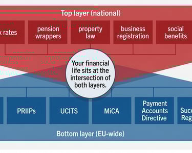 Every financial decision you make in Europe sits inside two regulatory layers — EU-wide rules and your country's national rules. Understanding both is non-negotiable.